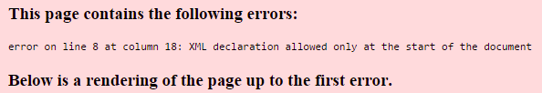 Ta thấy nội dung trong thẻ Code là một đoạn mã XML khác, đây là trường hợp giá trị của thẻ XML lại là một đoạn mã XML khác. Khi chạy lên sẽ bị lỗi như sau: