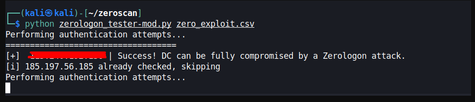 $ python convert-nmap-zerologon.py /home/kali/zero_logon.xml