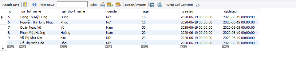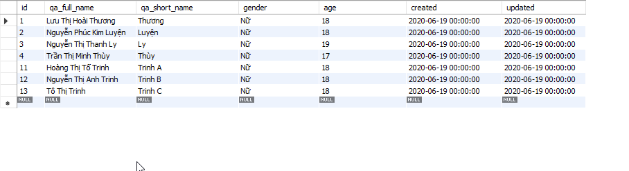 Cú pháp 3: Tìm tất cả các QA có qa_full_name chứa "Thị" ở vị trí bất kỳ:
