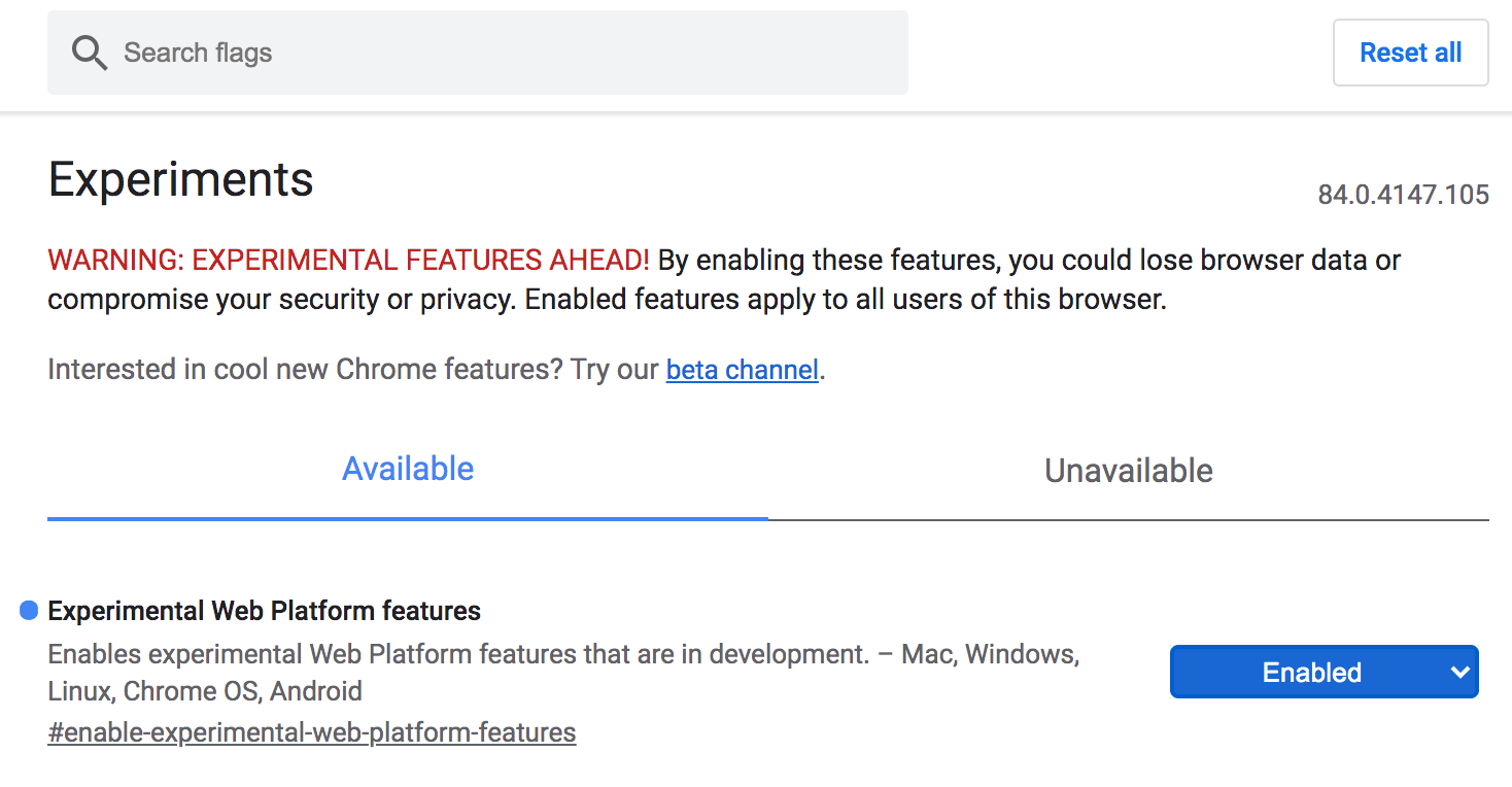 Thuộc tính này hiện chưa được support chính thức bởi browser, vì thế các bạn hãy cẩn thận trước khi sử dụng cho production nhé. Để thử nghiệm cho biết (như hình chụp của mình ở trên), bạn có thể bật cờ "Experimental Web Platform features" của Chrome để thử các tính năng mới.