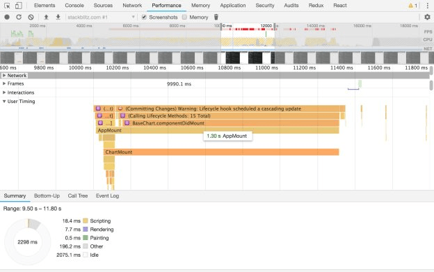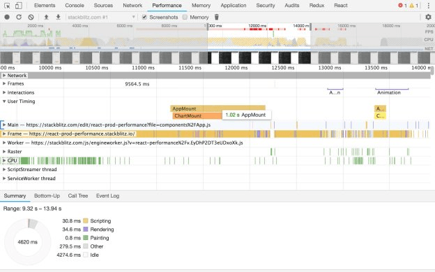 Chúng ta sẽ không thể cải thiện những thứ mà chúng ta không nắm rõ được, vì vậy điều đầu tiên chúng ta cần làm để cải thiện hiệu suất của ứng dụng React là đo thời gian cần thiết để render các thành phần chính. Để đo đựoc thời gian render cho một thành phần, bạn có thể sử dụng User Timing API, cách thức sử dụng thì bạn có thể tham khảo trong bài viết này