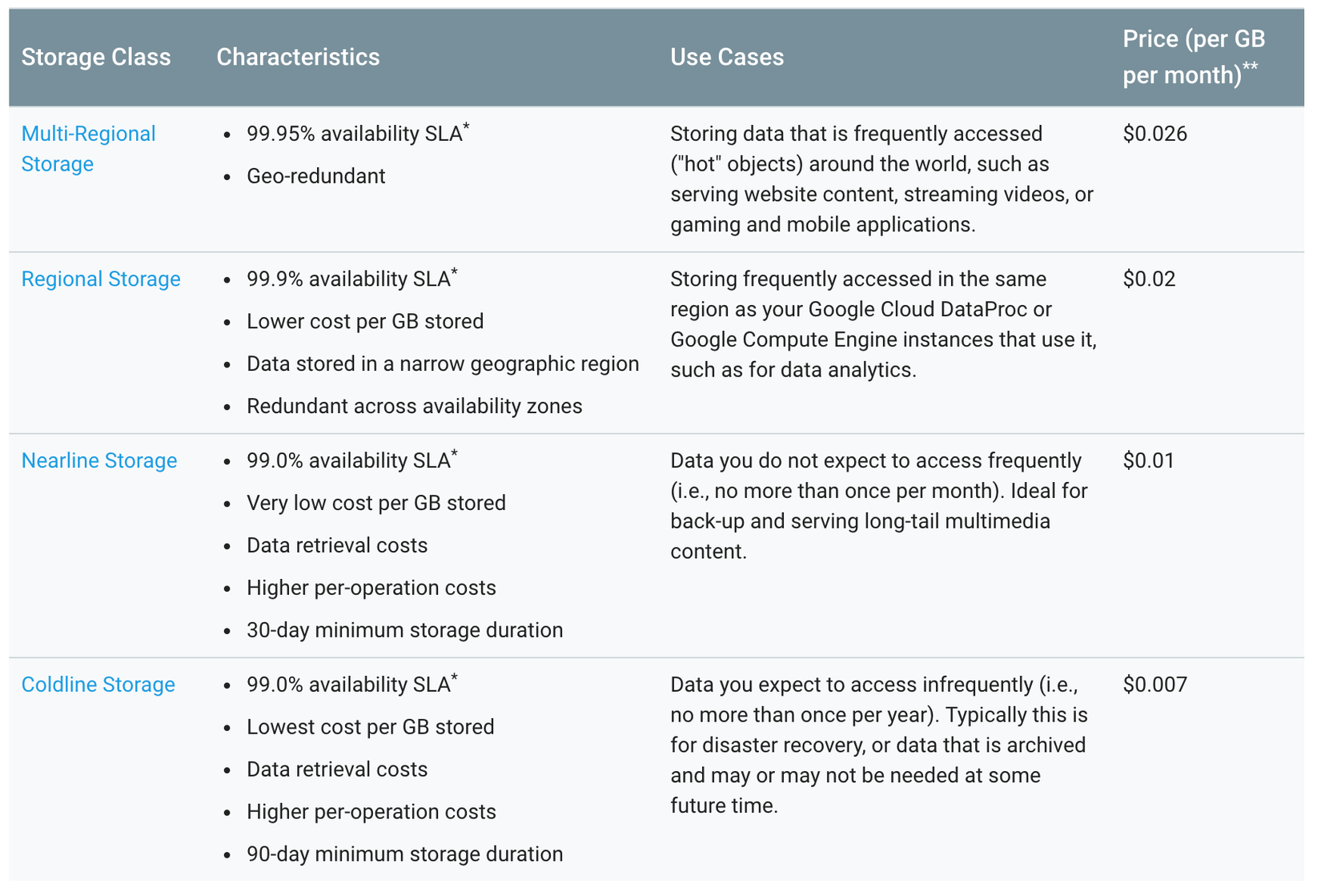 Một trong những service phổ biến của GCP đó là Google Cloud Storage, một Store lưu trữ các object có thể được access tại bất cứ đâu. GCP phát hành ra các cấp lưu trữ khác nhau dành cho Storage (Bucket) nhằm hướng đến những nhu cầu sử dụng khác nhau.