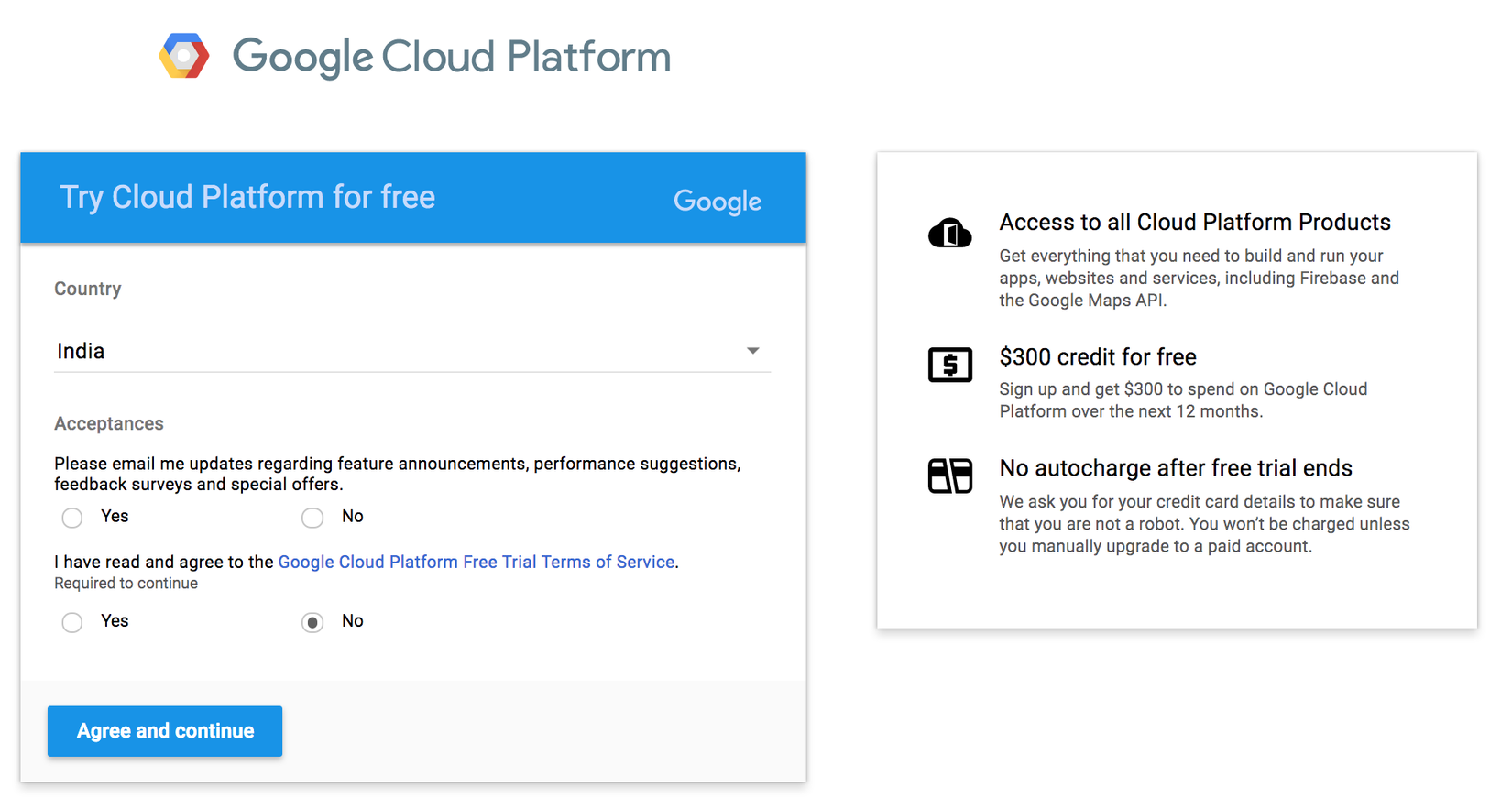 Bạn có thể lo lắng: "Đậu, mình link với credit card như thế thì sau 12 tháng, ko để ý thì nó charge mình thì bỏ mợ.." thì thoải mái nhé vì GCP cam kết, Credit card của bạn sẽ không bị charge tiền nếu bạn sài hết 300 USD. Và bạn sẽ được GCP khi bạn chạm ngưỡng này. Xem ý thứ 3 - được đề cập khi bạn sign-up GCP