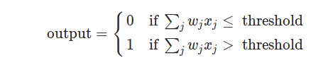 Sản lượng của nơron, 0 hoặc 1, được xác định bởi liệu tổng trọng số ∑jwjxj nhỏ hơn hay lớn hơn giá trị ngưỡng nào đó. Cũng giống như trọng số, ngưỡng là một số thực - đó là một tham số của nơron. Để đặt nó trong các thuật ngữ đại số chính xác hơn: