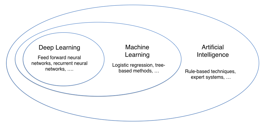 Deep Learning là một phần của ML trong hướng tiếp cận AI - bắt chước các hoạt động của bộ não con người trong việc xử lý dữ liệu và tạo ra các mô hình để sử dụng trong việc ra quyết định. Deep Learning là một tập hợp con của Machine Learning trong Trí tuệ nhân tạo (AI) có mạng lưới có khả năng