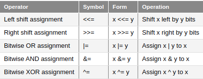 ví dụ : ta có phép gán là x = x >> 1 cách viết này tương đương với x >>= 1.