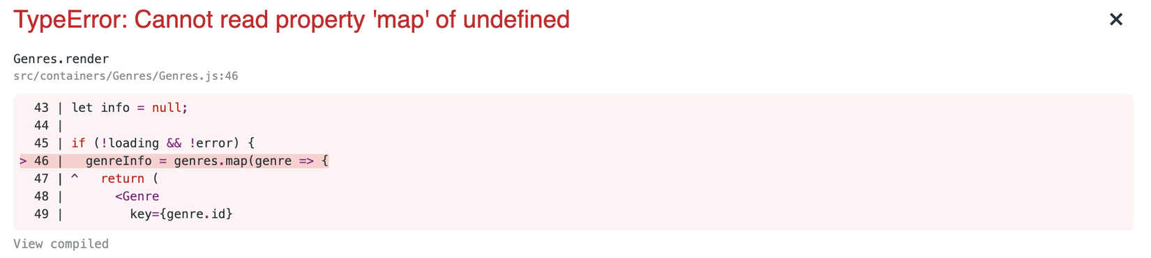 GIờ thì xử lý nó thôi. Biến genres đang bị undefined, cần thêm điều kiện if để đảm bảo cho trường hợp này.