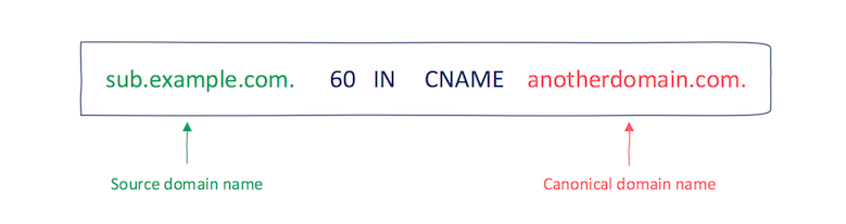 Tiếp đến ta sẽ tìm hiểu bản ghi CNAME. CNAME được sử dụng để trỏ tên miền này tới tiên miền khác (hay còn gọi là bí danh).