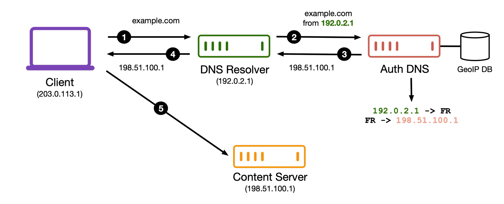 Hình trên rất tường minh và dễ hiểu nên mình sẽ không giải thích nhiều. Chỉ có một điểm lưu ý là khi Client truy cập vào domain example.com thì sẽ được máy chủ phân giải tên miền gửi lại địa chỉ IP để cho client truy vấn nội dung. Vì như ta đã biết các thiết bị mạng giao tiếp với nhau trên Internet thông qua địa chỉ IP, tên miền chỉ để cho con người dễ nhớ hơn mà thôi.