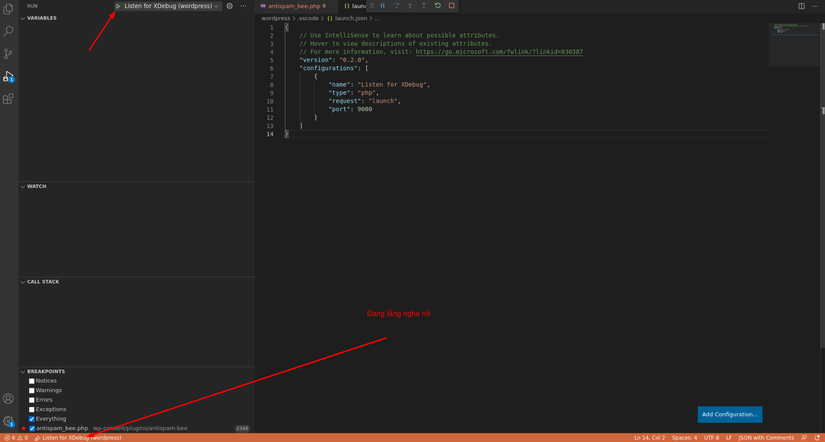 Bật lắng nghe debug trên vscode lên và load lại trang xdebug.php và kiểm tra kết quả.