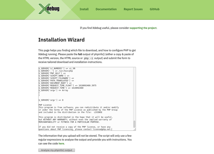 Sau khi cài đặt xong extention PHP Debug, tiếp đến ta sẽ cài Xdebug. Để cài Xdebug nhanh và đơn giản ta sử dụng Xdebug wizard.