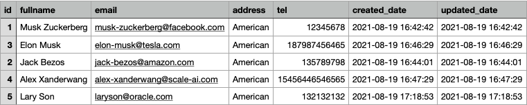 Sau khi thiết kế và setting database mình init data cho 2 bảng để có thông tin tác giả và các cuốn sách như sau: