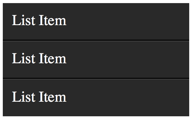 Để thêm chiều sâu cho danh sách của bạn, áp dụng border-bottom vào từng li màu tối hơn màu nền của li. Tiếp theo, áp dụng border-top với một vài sắc thái nhẹ hơn.