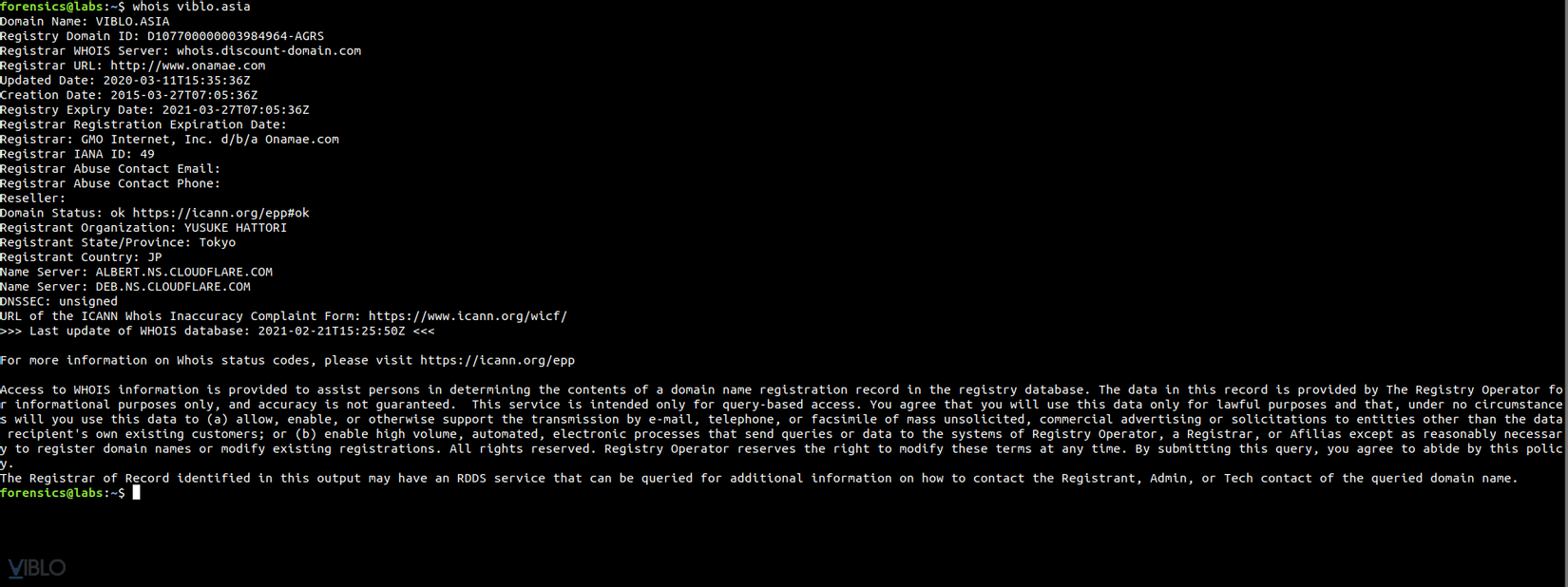 Hãy thử truy vấn Whois trên miền 'viblo.asia':