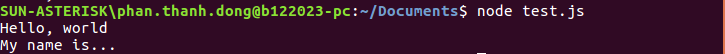 Tức là ở đây mình mong đợi hành động đầu tiên sẽ là in ra màn hình chữ "Hello, world", ngay sau khi in xong thì tiếp tục in tiếp dòng chữ "My name is..."