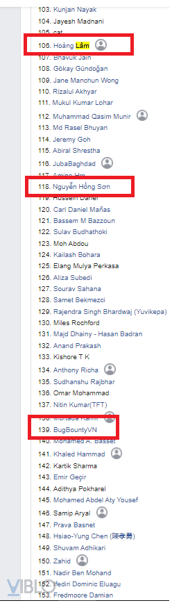 Tiếp đến là 3 bạn Hoàng Lâm, Nguyễn Hồng Sơn và BugBountyVN