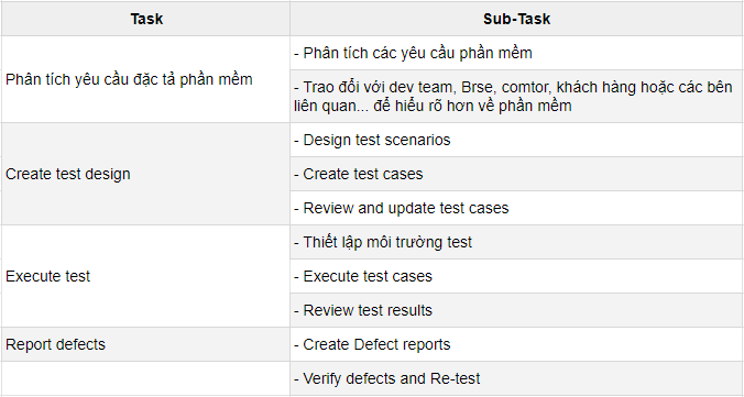 Step 1: Phân chia toàn bộ task của dự án thành những sub-task.