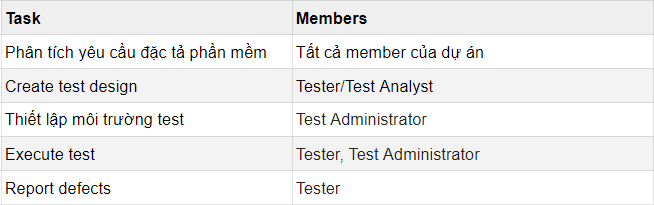Ở bước này, mỗi task được phân chia cho các thành viên thích hợp trong dự án.