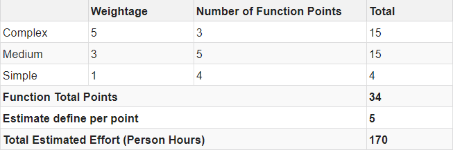 - Total Function Points: tổng số point (weightage) của toàn bộ function trong hệ thống.