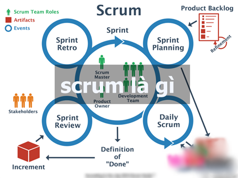 Trong thời gian của một Sprint, sẽ đồng thời thực hiện Daily Scrum, Sprint Review và Sprint Retro để hoàn thiện sản phẩm.