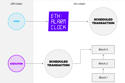 Về ý tưởng họ tạo ra một kiến trúc Kiến trúc Ethereum Alarm Clock được mô tả gồm hai thành phần là symbiotic và differential. Thành phần đầu tiên là Ethereum Alarm Clock thực chất là các hợp đồng thông minh. Chúng được triển khai vào chuỗi chính Ethereum và hoạt động một cách đáng tin cậy. Thành phần thứ hai là TimeNode network. TimeNodes là các tác nhân thực thi ngoài chuỗi chịu trách nhiệm xử lý logic của các lần thực thi.