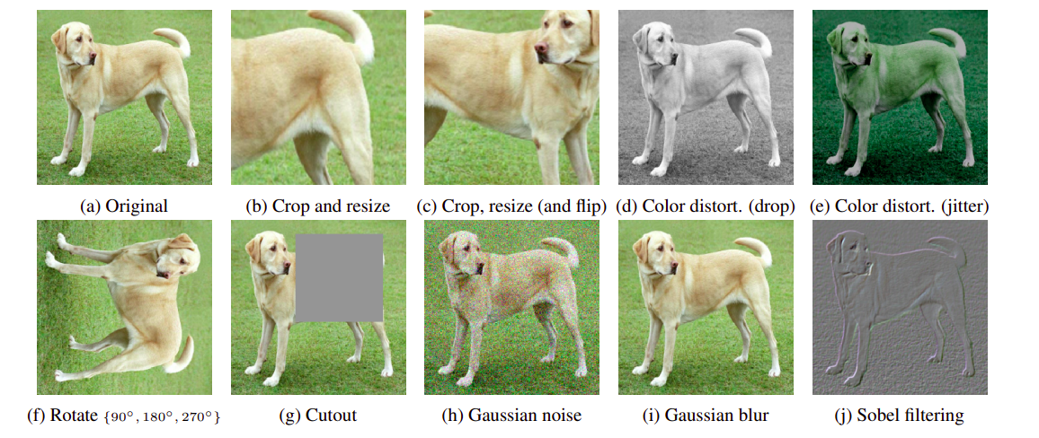 Data augmentation là 1 phần khá quan trọng trong các mô hình contrastive learning và gần như là không thể thiếu được. Trong bài SoTA SImCLR của nhóm tác giả đến từ Google Research, người ta đã dành hẳn 1 chương để nói về data augmentation và tầm quan trọng của nó đối với contrastive learning :Composition of data augmentation operations is crucial for learning good representations và Contrastive learning needs stronger data augmentation than supervised learning. Nếu data augmentation không đủ phức tạp thì gradient sẽ không đủ tốt để model có thể học các đặc trưng trong dữ liệu và ngược lại. Các tác giả chủ yếu sử dụng tuần tự 3 loại augment : random crop, random color distortions, và random Gaussian blur. Và nhận ra rằng random crop và color distortion là khá quan trọng để model đạt được kết quả tốt. Nhưng nếu chỉ sử dụng riêng rẽ 1 loại biến đổi thì sẽ không cho ra kết quả vượt trội, chỉ khi kết hợp 2 loại biến đổi với nhau thì kết quả mới đạt tới " state-of-the-art ".