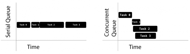 - Serial Queue: Các task được thực thi lần lượt, kết thúc task này mới bắt đầu task khác