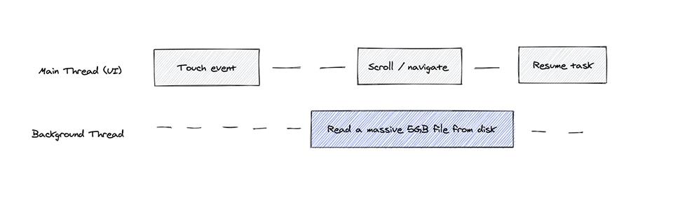 Nguyên nhân của việc main thread bị block thường là do chúng ta không cẩn thận chạy các task nặng và tốn thời gian trên đó. Để tránh điều này thì trong các app IOS còn có những thread khác gọi là background thread sử dụng để chạy các task tốn thời gian như request data từ API, read/write dữ liệu,...