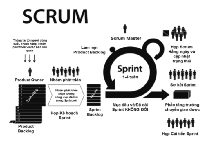 Scrum chia dự án thành các vòng lặp phát triển gọi là các sprint. Mỗi sprint thường mất 2- 4 tuần (30 ngày) để hoàn thành. Nó rất phù hợp cho những dự án có nhiều sự thay đổi và yêu cầu tốc độ cao.