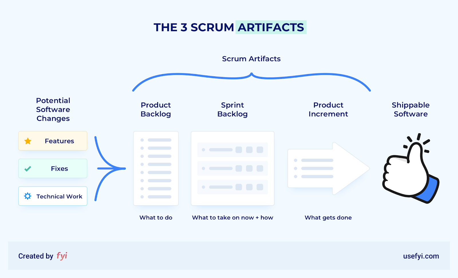 Các tạo tác của Scrum đại diện cho công việc hoặc giá trị để cung cấp sự minh bạch và cơ hội để kiểm tra và điều chỉnh. Các tạo phẩm được định nghĩa bởi Scrum được thiết kế đặc biệt để tối đa hóa tính minh bạch của thông tin quan trọng để mọi người đều có cùng hiểu biết về sản phẩm.