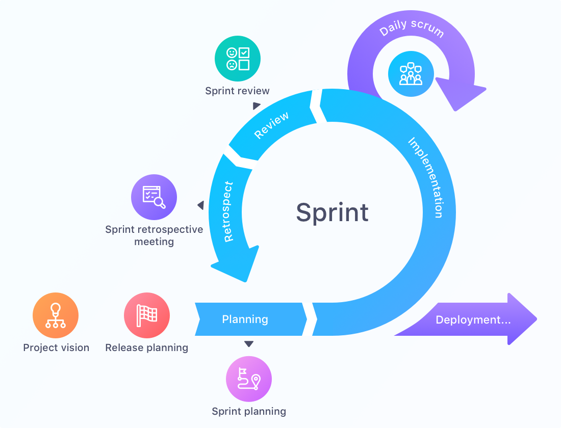 - Mỗi Sprint có thể được coi như là một dự án nhỏ kéo dài không quá một tháng. Giống như các dự án, các sprint đều cần hoàn thành một mục tiêu nào đó. Mỗi sprint cần có mục tiêu rõ ràng là xây dựng cái gì, một bản thiết kế và kế hoạch linh hoạt sẽ xây dựng nó, công việc và kết quả sản phẩm.