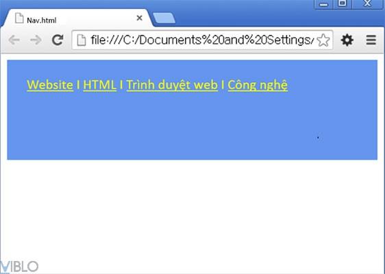 Thẻ <nav>: Đây được xem như đường dẫn liên kết tới các nội dung cốt lõi của trang Web, thông thường thẻ <nav> được tìm thấy trong thẻ <header> hoặc <fooder>.