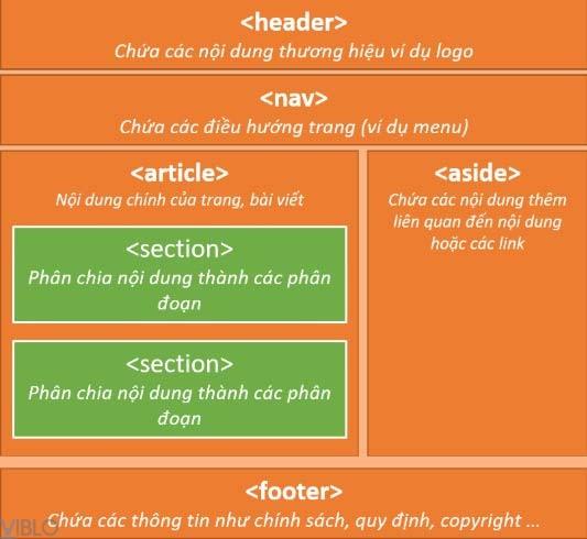 - Semantic (yếu tố ngữ nghĩa trong HTML5): là định nghĩa, mô tả chính xác, cô đọng một nội dung trong trang web, từ đó giúp xác định vai trò của chính nội dung đó so với toàn bài.