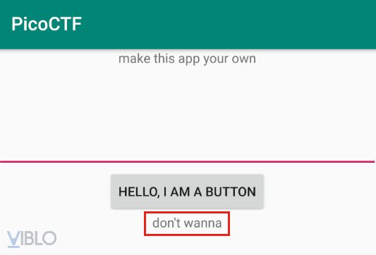 Ở bài CTF này, khi bấm vào nút sẽ hiện lên dòng chữ don't wanna, để hoàn thành bài CTF chúng ta sẽ cần sửa code smali để khi nhấn nút sẽ hiện ra flag.
