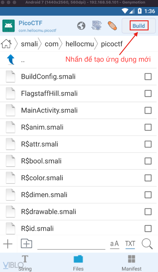 Khi đã hoàn tất chỉnh sửa thì chúng ta sẽ nhấn vào nút "build" ở góc trên bên phải màn hình để tạo ra ứng dụng mới.