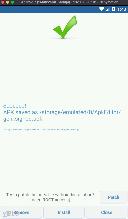 Như vậy chúng ta đã thành công patch một ứng dụng Android bằng công cụ APK Editor Pro.