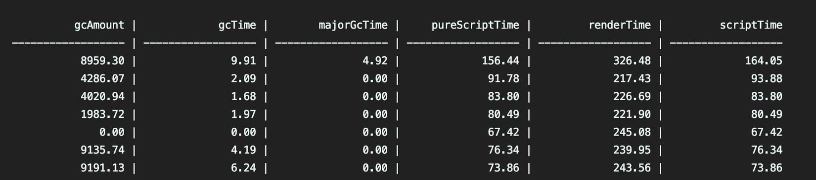 Chỉ cần chạy thử nghiệm Protractor, có thể tạo ra các kịch bản mà công cụ sẽ lặp lại trong một số lần và sẽ báo cáo các số liệu hiệu suất từ động cơ V8 ở định dạng có thể đọc được.