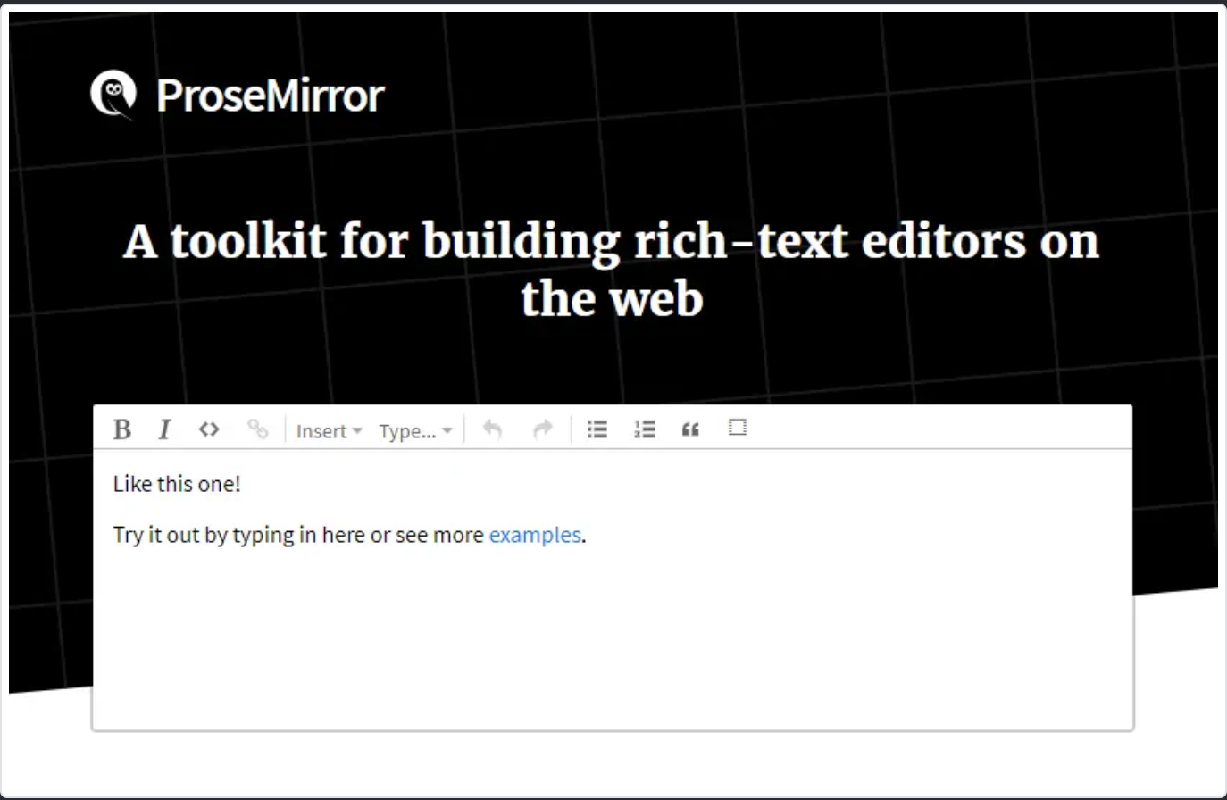 Một bộ công cụ để xây dựng trình soạn thảo văn bản đa dạng thức trên web. Một trình soạn thảo nội dung lý tưởng tạo ra các tài liệu có cấu trúc, có ý nghĩa về mặt ngữ nghĩa, nhưng làm như vậy theo cách dễ hiểu cho người dùng. ProseMirror cố gắng thu hẹp khoảng cách giữa soạn thảo văn bản Markdown và các trình soạn thảo WYSIWYG cổ điển.