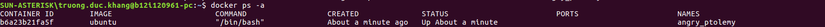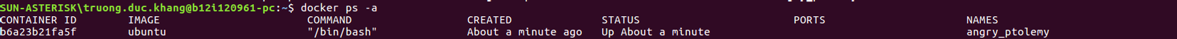 Command sử dụng để hiện thị ra list các container dang chạy và những container đã tồn tại.
