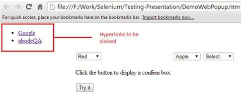 Hãy truy cập “google.com” và “abodeqa.com” bằng cách sử dụng phương thức linkText() và partialLinText() của WebDriver.