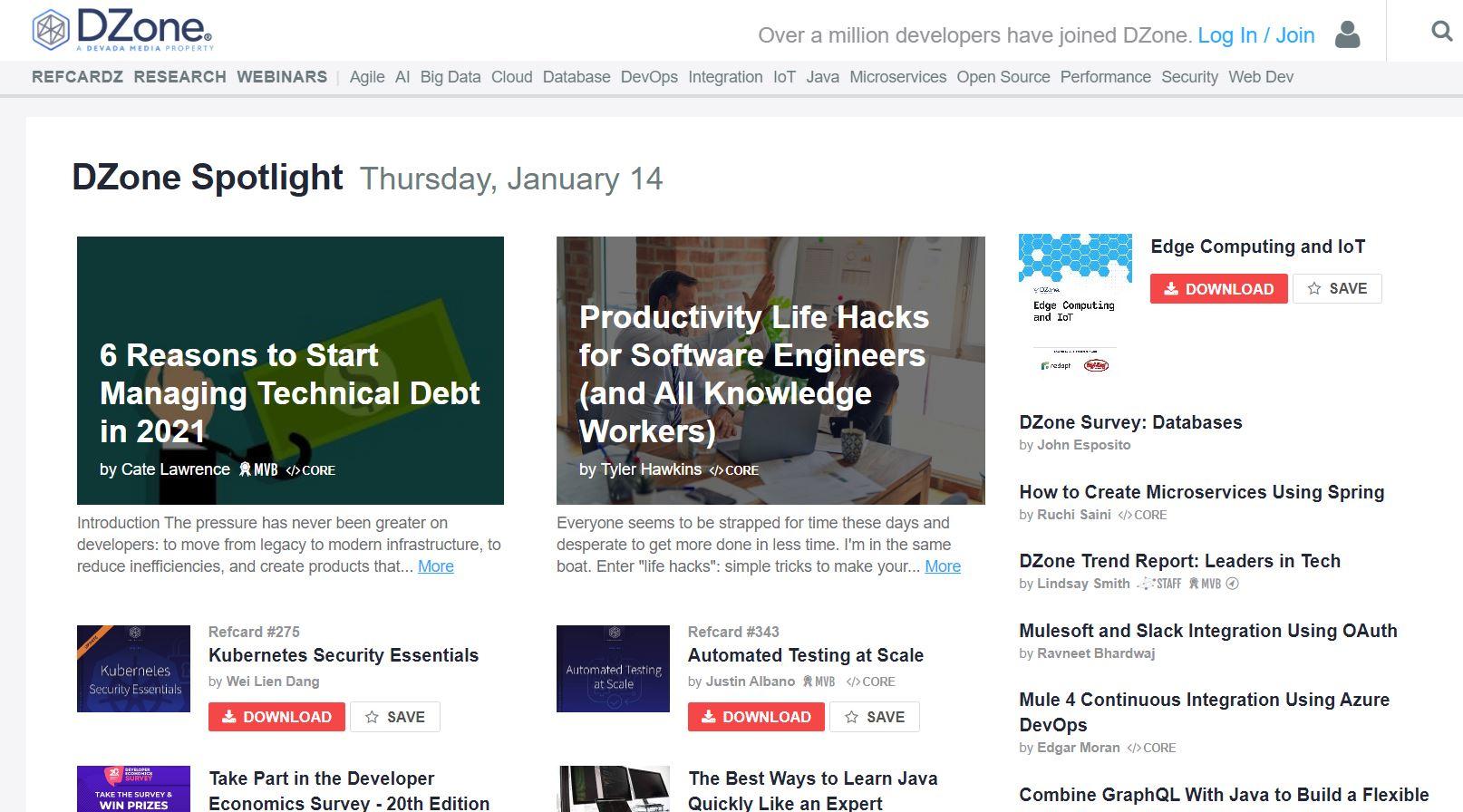 Với hơn một triệu thành viên, Dzone là một trong những website lớn nhất, cung cấp những kiến thức mới nhất về kiểm thử phần mềm. Điều tuyệt nhất về Dzone chính là những bài giảng, kiến thức về lập trình đều được phân loại theo từng mục riêng. Mỗi mục đều có những bài viết chia sẻ kiến thức và kinh nghiệm của các chuyên viên kiểm thử. Ngoài ra, website này còn cung cấp cho bạn những phần mềm kiểm thử miễn phí, để bạn có thể tải về và thử nghiệm ngay.