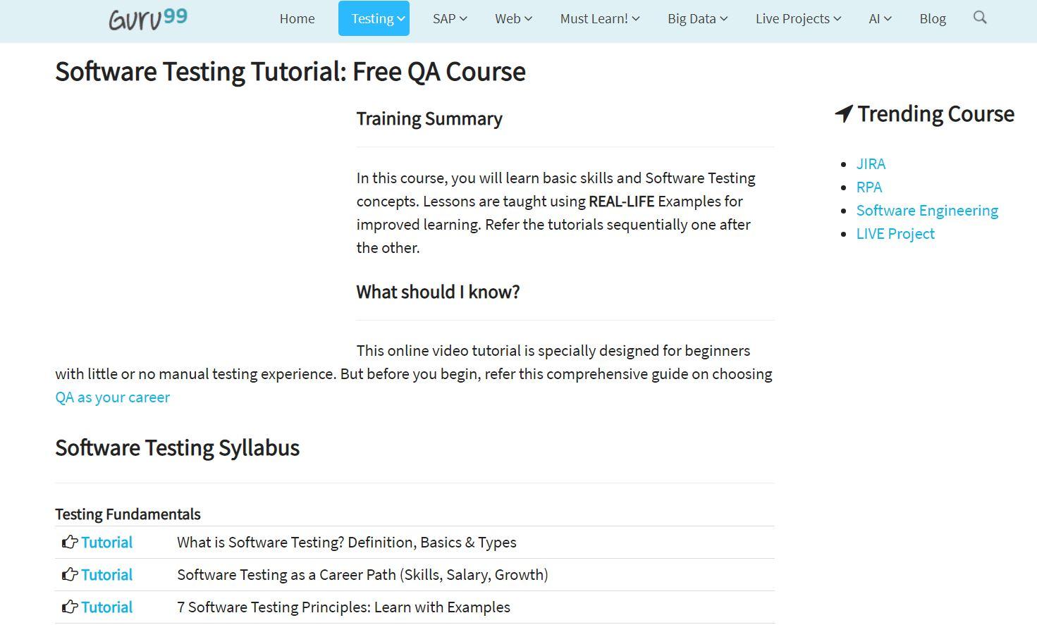 Nếu bạn là một newbie (người mới) về lập trình và kiểm thử, đây chính là website tốt nhất để bạn bắt đầu. Với những bài học và khái niệm được giải thích đơn giản hóa, các bạn có thể dễ dàng tiếp thu và nắm bắt kiến thức nhanh hơn. Mỗi bài học đều có một video ngắn khoảng 10-20 phút giúp tóm tắt nội dung kèm các ví dụ minh họa dễ hiểu. Ngoài ra, website này cũng cung cấp các bài tập và dự án để bạn thực hành.