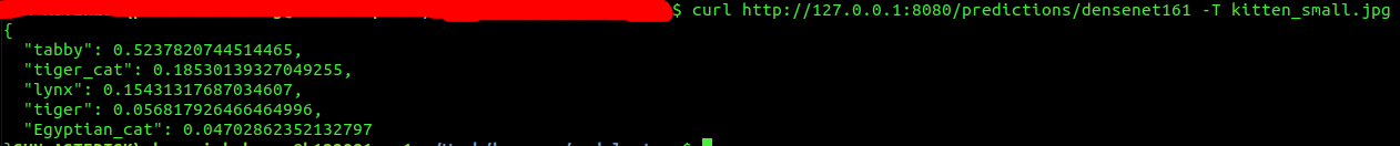 curl http://127.0.0.1:8080/predictions/densenet161 -T kitten_small.jpg