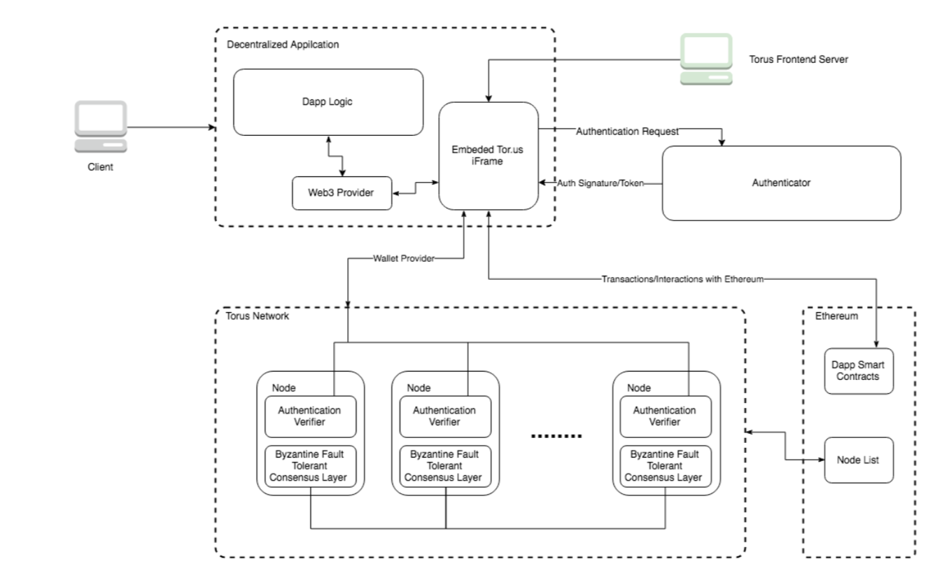 Các lập trình viên cho các ứng dụng phi tập trung (Dapp) hẳn sẽ hiểu rõ việc khó khăn như thế nào cho người dùng khi lần đầu tiên tương tác với ứng dụng này. Phần lớn các ứng dụng phi tập trung thường cần đến một phần quan trọng chính là địa chỉ ví - do đó khá khó khăn có để có thể triển khai các ứng dụng phi tập trung đến tất cả các users do thói quen ngại phải cài đặt thêm 1 bên thứ 3 để lưu trữ ví, do đó Torus đã đề xuất một phương pháp để tăng UX cho người dùng bằng cách cho người dùng đăng nhập thông qua các bên thứ 3 như Google, Facebook, Github, ...