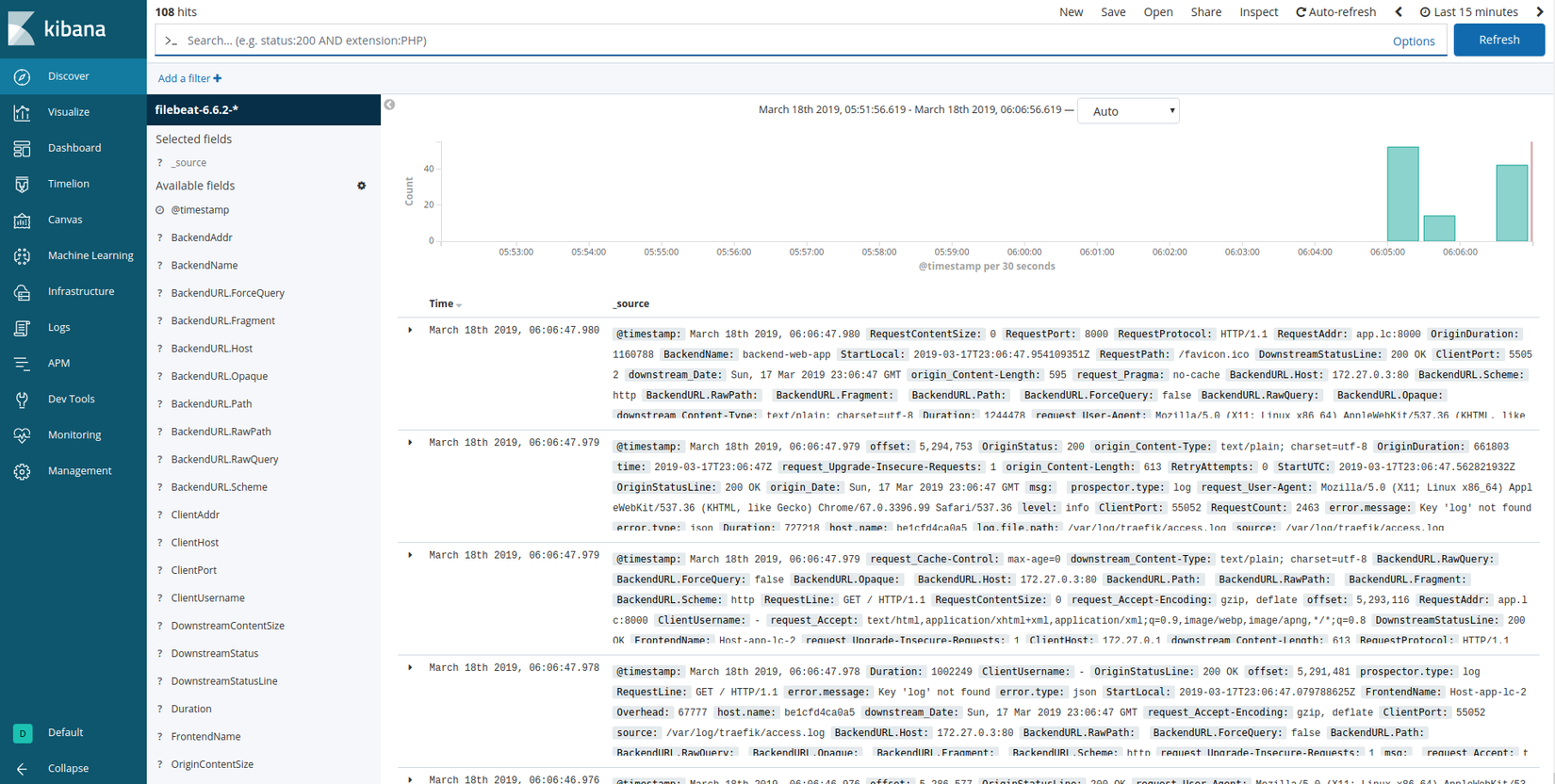 traefik.lc:8000. Vì traefik có support log với format là json nên chúng ta sẽ tận dụng nó luôn. Do đó, json log sẽ được gửi tới Elasticsearch. - Web app đơn giản, truy cập tại trang