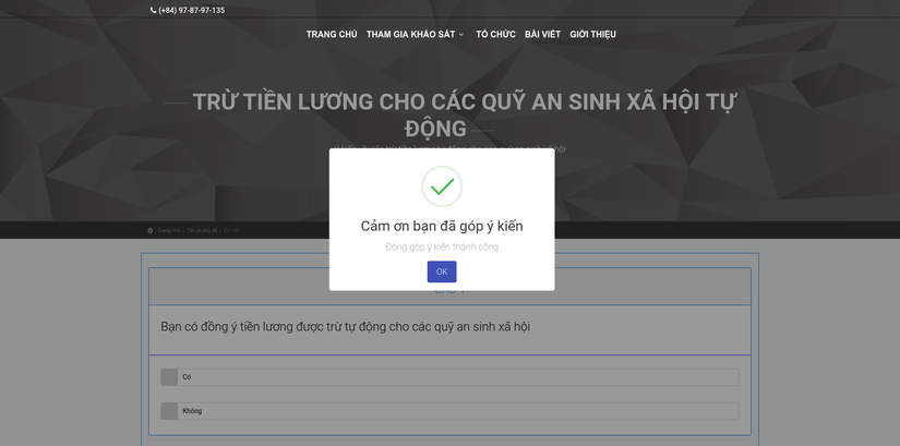 Sau đó bạn kéo xuống phía dưới và nếu bạn muốn tôi ghi nhận ý kiến bạn đã chọn thì chọn Gởi ý kiếnsẽ được thông báo thành công như sau