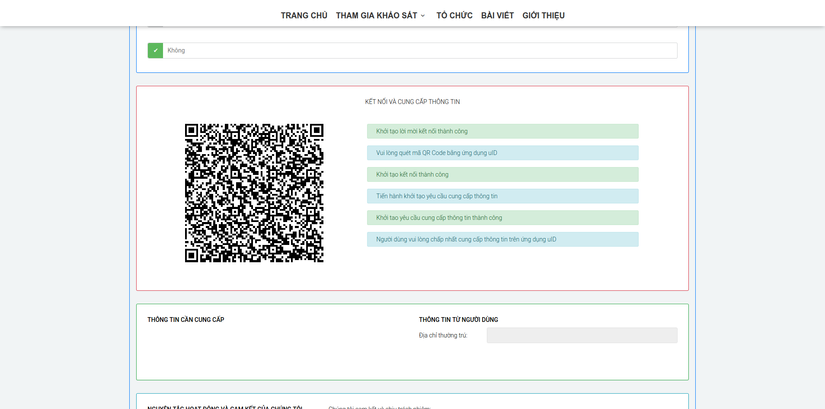 Người dùng nhận được yêu cầu kết nối đến với hệ thống "Trưng cầu ý kiến" tương tự như hệ thống "Cấp định danh số ở trên"