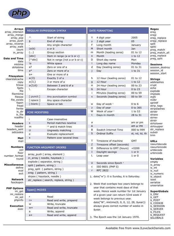 PHP cheat sheet với các hàm cơ bản, cú pháp, xử lý ngày tháng, ...