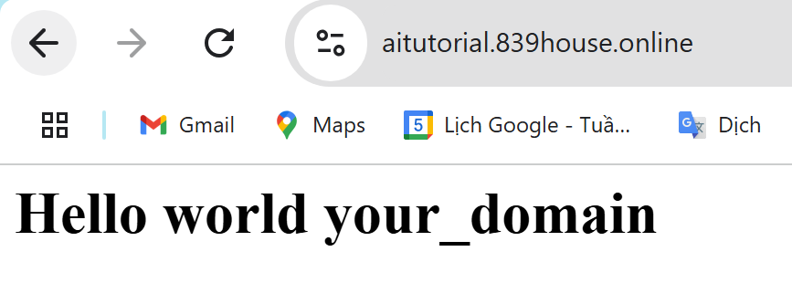 <html> <head> <title>Welcome to your_domain!</title> </head> <body> <h1>Hello world your_domain</h1> </body> </html>Lưu tệp bằng